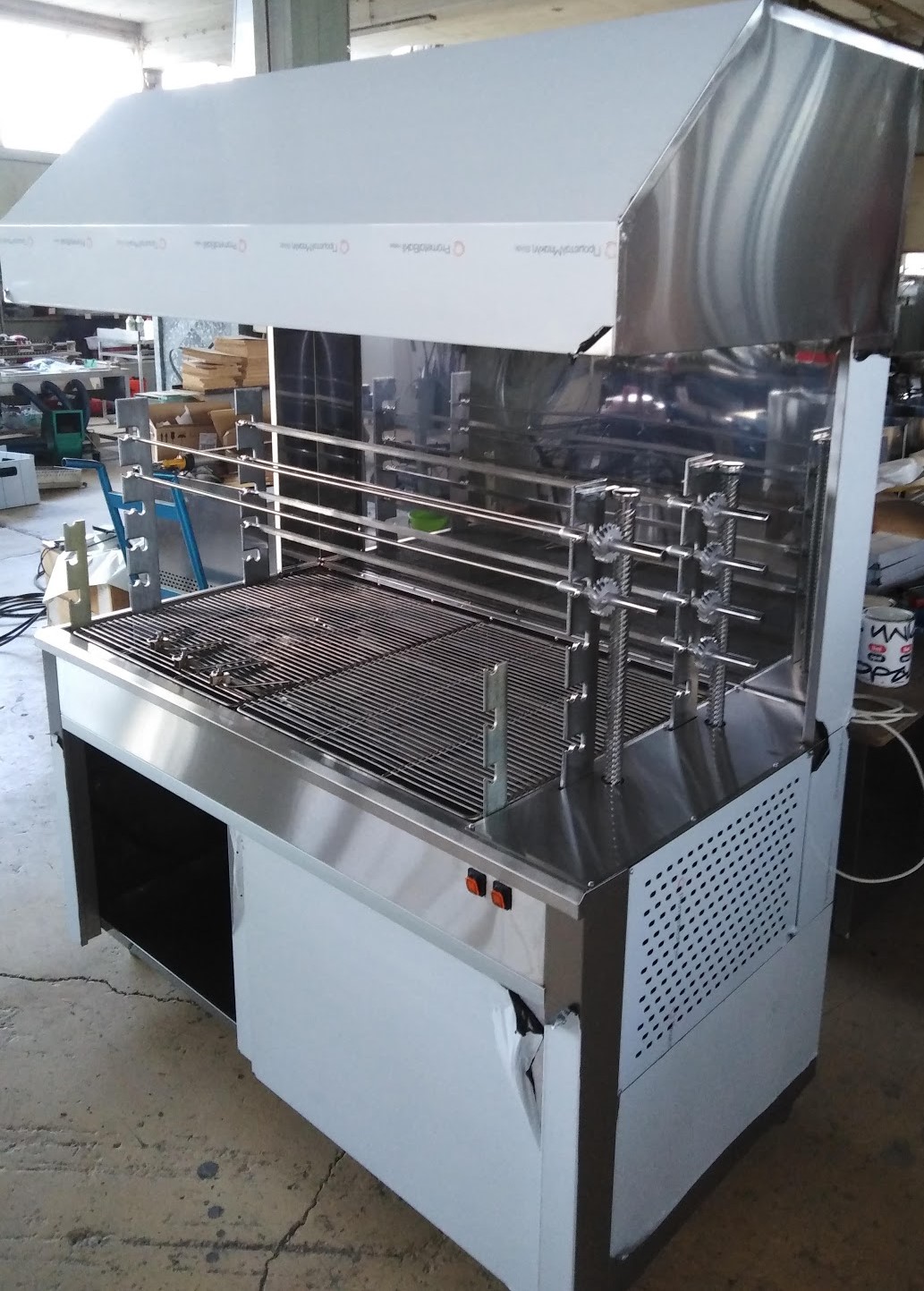 Ψησταριά κάρβουνου επιδαπέδια με 2πλό μηχανισμό. Διαθέτει 4 σούβλες. Στο κάτω μέρος υπάρχει χώρος ερμαρίου με συρόμενες πόρτες. Διαστάσεις 155Χ80Χ200 εκ.