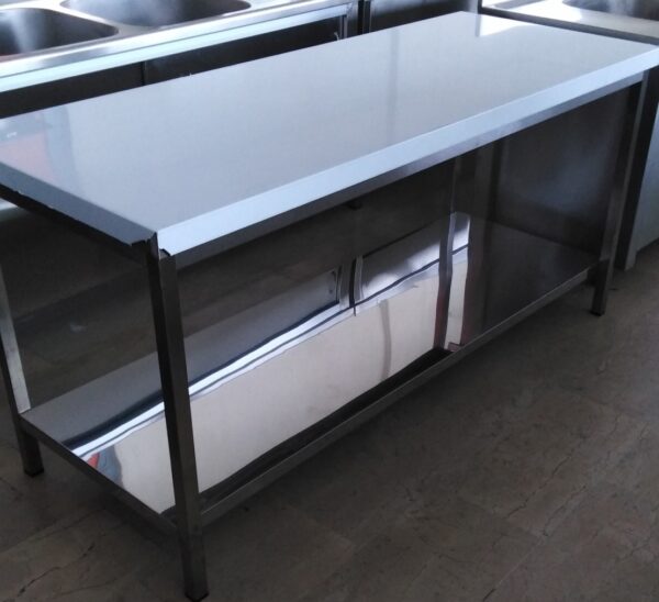 Ανοξείδωτο τραπέζι εργασίας. Έχει ενα ράφι στο κάτω μέρος. Διάσταση 180Χ70Χ86 εκ.
